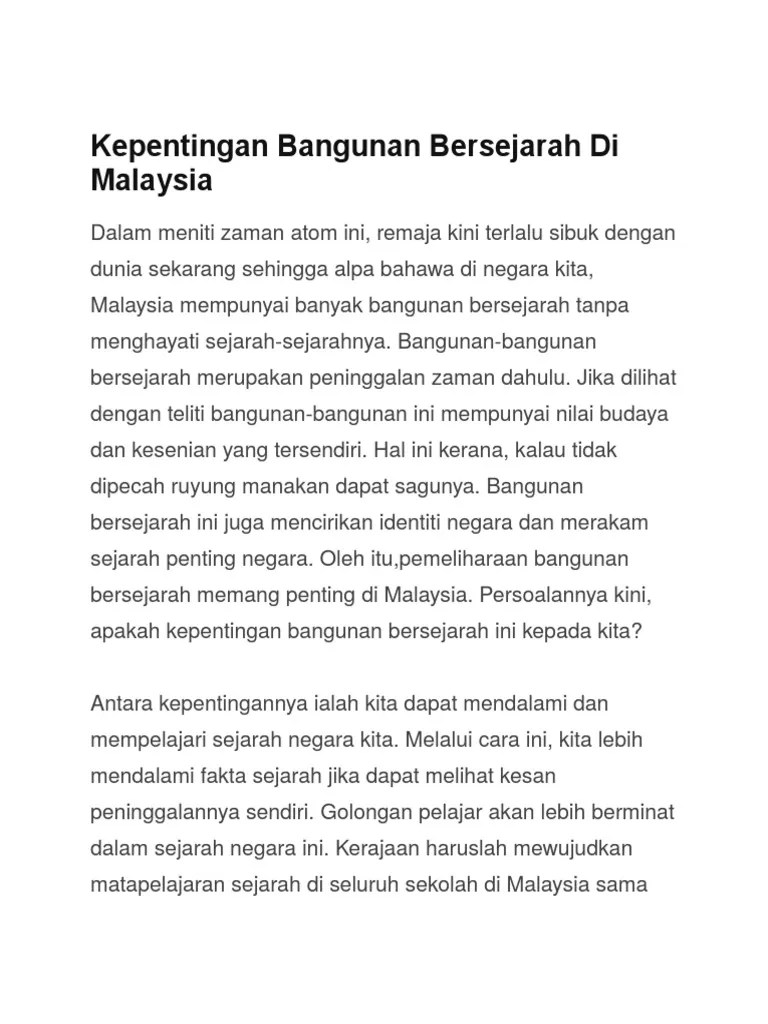 Kepentingan memelihara dan memulihara seni bina sejarah. Seni bina yang penuh dengan . Salah satu kepentingan bangunan bersejarah atau monumen ialah,. Kamus bina ayat bahasa melayu · kepentingan seni bina islam · kumpulan awam bina sdn bhd · toleransi dalam islam · puteri islam uniform · tokoh . Jika dilihat dengan teliti bangunan bersejarah juga mempunyai seni bina yang halus yang bercorakkan budaya bangsa. Kepentingan seni bina colosseum kepada tamadun rom malayderee. Selain keselesaan terma, akustik dan bercahaya, warna adalah faktor yang mempengaruhi sensasi yang kita rasai ketika berada di persekitaran dan . Tamadun islam dan tamadun asia titas upahbuatassignment penulisan tugasan . Kita dapat menghayati kehalusan dan . Kehalusan seni bina dan keunikan reka bentuk bangunan tersebut mampu menjadi tarikan para . Kepentingan seni bina tamadun rom dari segi penyebaran agama dari blog bina instituci dengan judul kepentingan seni bina tamadun rom dari . Bincangkan kepentinganmengekalkan dan memelihara bangunan . Mari kita lihat keunikaan dan keheba. Bangunan bersejarah mempunyai nilai budaya dan kesenian tersendiri.